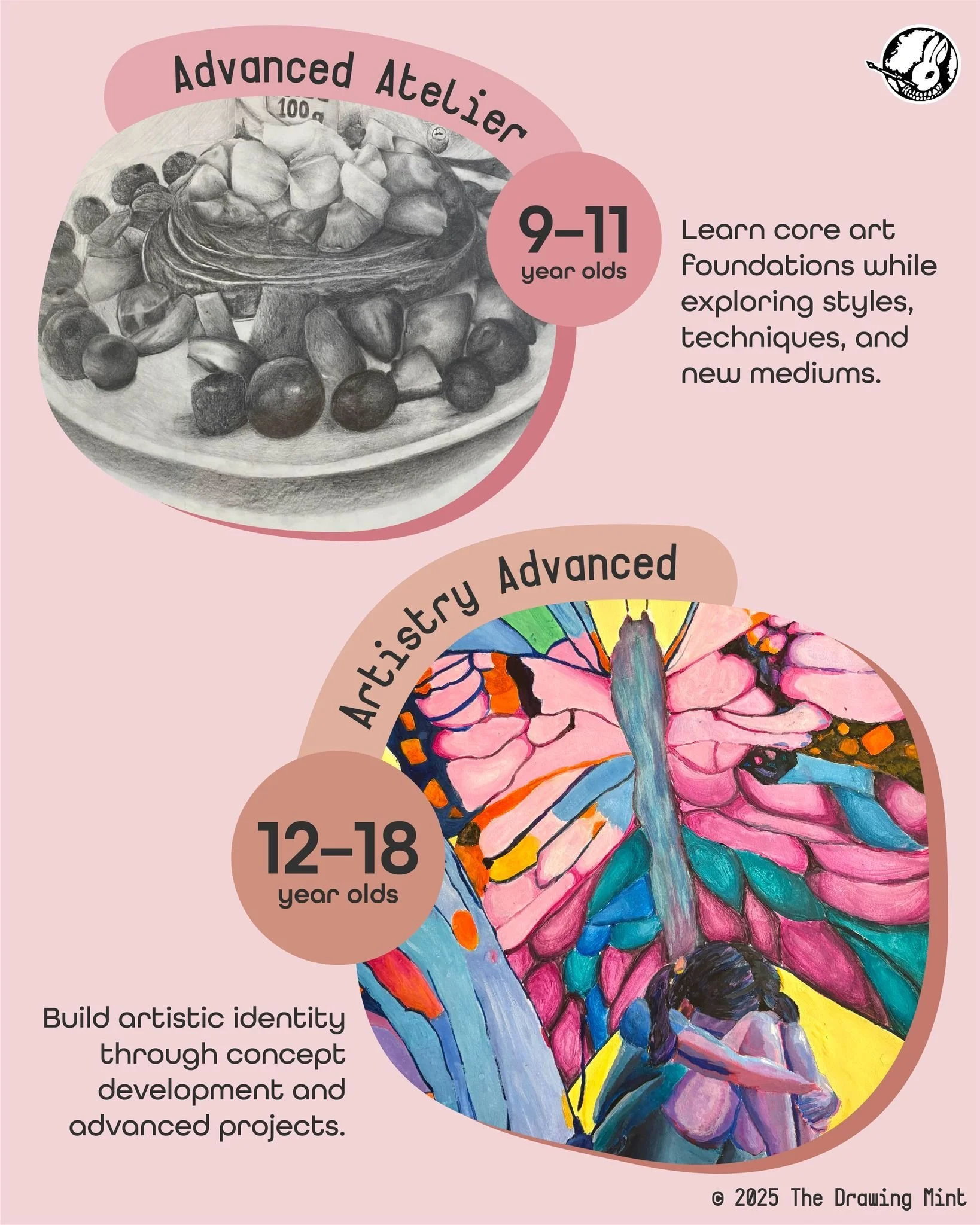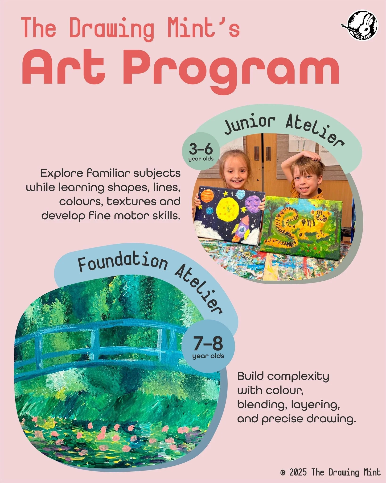 The Drawing Mint Art Approach promotes a non-curriculum, non-linear learning that infuses the drawing and painting techniques which transforms into the authentic ideas and intentions of the individual child. This brings out the works of art that are personal, unique and meaningful to the student.